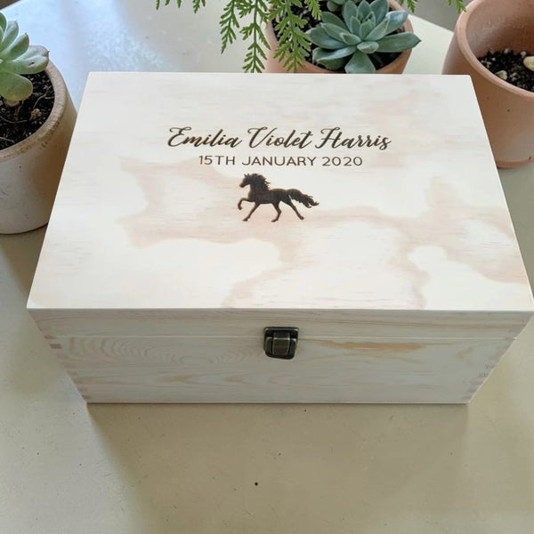Preserve life’s most precious memories with our handcrafted wooden keepsake boxes. Perfect for storing mementos, baby items, jewellery, letters, and more, each box is crafted from quality solid pine timber and can be personalised with engravings, names, dates or motifs. These boxes make heartfelt gifts for births, christenings, weddings, anniversaries or any milestone.