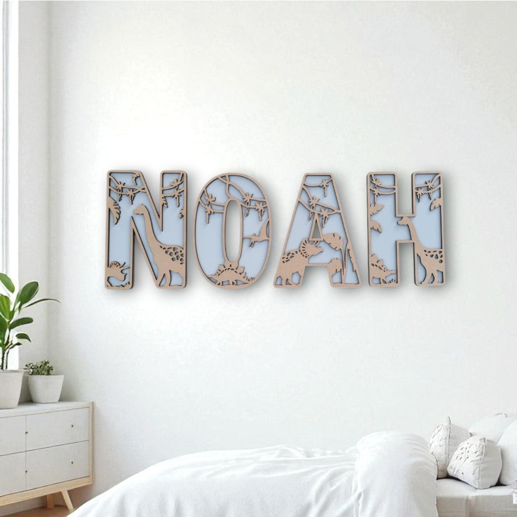 Personalised Two-Layered Painted Dinosaur Letters – Custom Name Signs for Kids’ Rooms