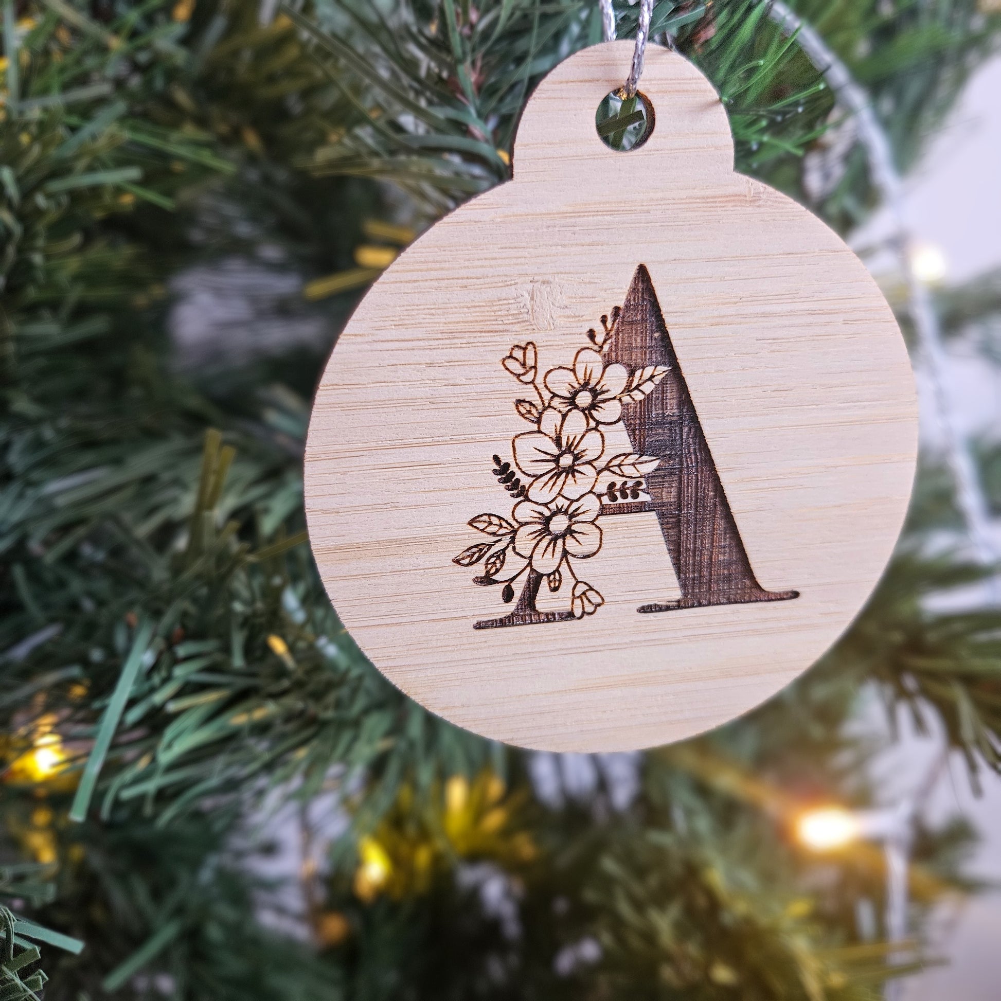 Add a touch of natural elegance to your festive decor with our Engraved Bamboo Floral Monogram Bauble. Crafted from sustainable bamboo and beautifully engraved with a delicate floral letter design, this personalised ornament is the perfect way to celebrate someone special during the holiday season.